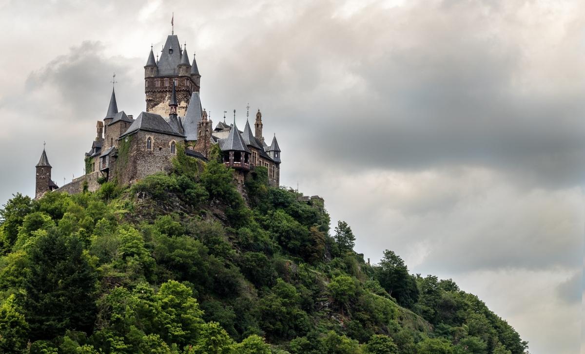 Il castello di Cochem, fondato intorno all'anno 1000 e ricostruito nel 1868, si trova sulle rive della Mosella, tra i vigneti.